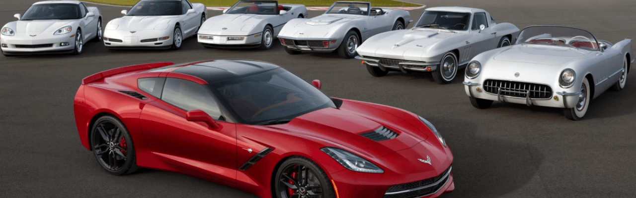 1968: C3 “Mako Shark”. Novo corpo, T-tops removíveis, motor 427 vira 454 em 1970 (LS6 450 cv). 1971: potência cai por emissões. 1972: último chrome bumper. 1978: 25 anos, fastback de vidro, 220 cv L82. 1981: pior ano – 205 cv na Califórnia. 1982: último C3 em Bowling Green, Kentucky (nova fábrica). Apenas 40 Cross-Fire Injection.
