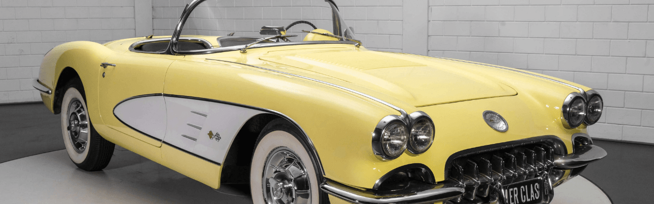 Em 1953, Harley Earl, chefe de design da GM, criou o primeiro esportivo americano de série com carroceria de fibra de vidro: Chevrolet Corvette. Apresentado como concept no Motorama de NY (janeiro 1953), o público enlouqueceu. Em 30 de junho de 1953, em Flint (Michigan), começou a produção do C1. Motor “Blue Flame” 6 cilindros 150 cv, câmbio Powerglide 2 marchas, 0-100 km/h em 11 s. Apenas 300 unidades brancas com interior vermelho em 1953 – todas feitas à mão.
