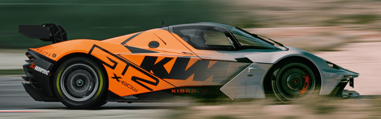 Chassis de carbono monocoque Dallara, suspensão push-rod e aerodinâmica extrema. Lançou o X-Bow RR (360 cv) e GT4 para competição. KTM ganhou 24h de Nürburgring na classe e virou referência em track-toys acessíveis (cerca de €100k).