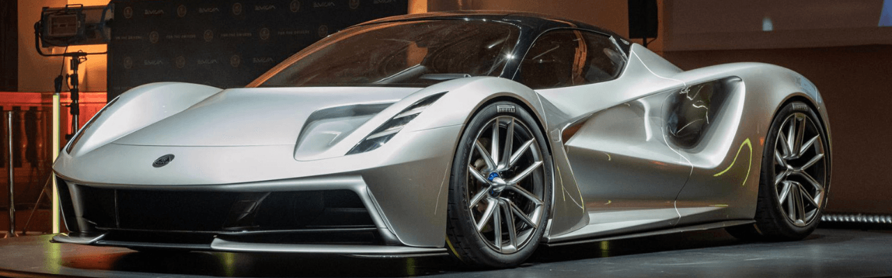 2012: Bahar demitido por má gestão. 2017: Geely compra 51%, Etika 49% – investimento £2 bi. 2018: Feng Qingfeng CEO. 2019: Evija hyper EV, 2.000 cv, 1.680 kg, 0-100 em <3s, 130 unidades £1,7M. Eletre SUV EV anunciado. Mudança: de purista para lifestyle. Produção Hethel expande. Vendas: 1.500/ano.
