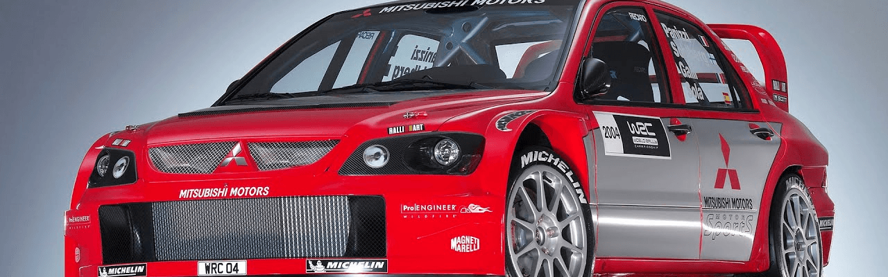 1982 estreia o Pajero (Montero/Shogun), que vence o Dakar 12 vezes — recorde absoluto. 1992 nasce o Lancer Evolution I para homologação do Grupo A. De 1996 a 1999 Tommi Mäkinen conquista 4 títulos mundiais seguidos com Evo III, IV, V e VI. O 4G63T vira o motor mais tunado da história. A Mitsubishi vende 1 milhão de carros/ano e o tridente vermelho é respeitado em todos os continentes.